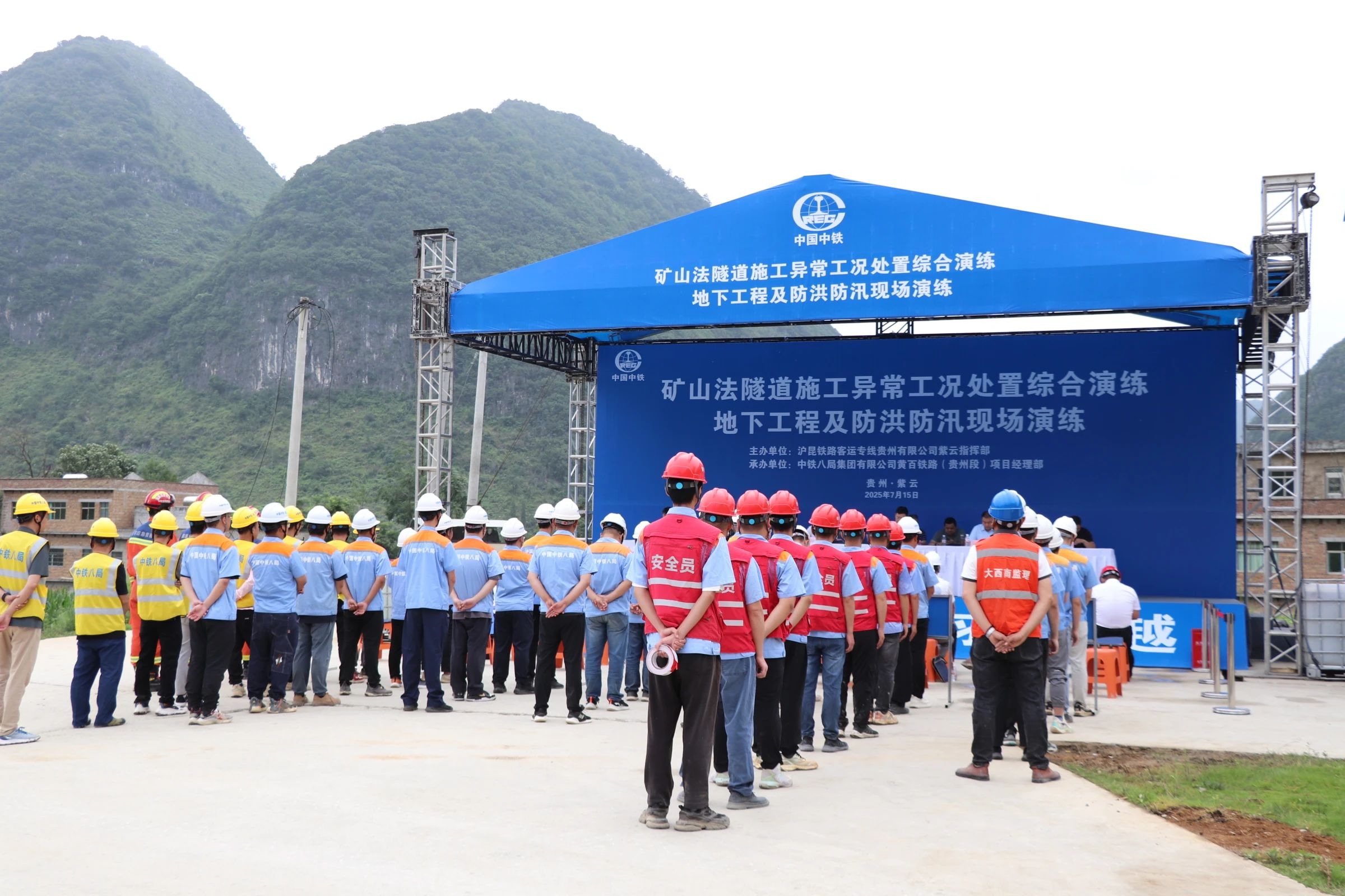 为切实强化隧道施工安全风险管控,有效提升突发事件应急处置能力。7月15日,由沪昆客专贵州公司紫云指挥部主办、黄百铁路项目部承办的隧道工程施工应急演练在控制性工程白石岩隧道成功举行。成都局集团公司建设部、沪昆客专贵州公司、紫云县应急管理局及黄百铁路贵州段各参建单位、监理单位相关领导现场观摩指导,共同检验项目应急响应与处置实战能力。