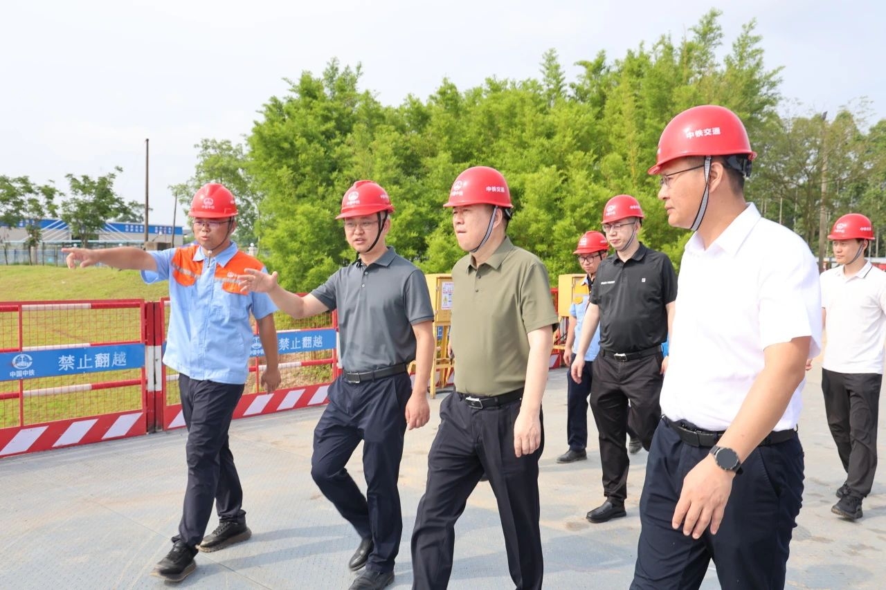7月8日,中铁交通党委书记、董事长李建光到南新高速公路大桥分部检查调研,广西中铁南新高速公路有限公司总经理赵毅,公司党委副书记、总经理李超,副总经理王杰陪同调研。