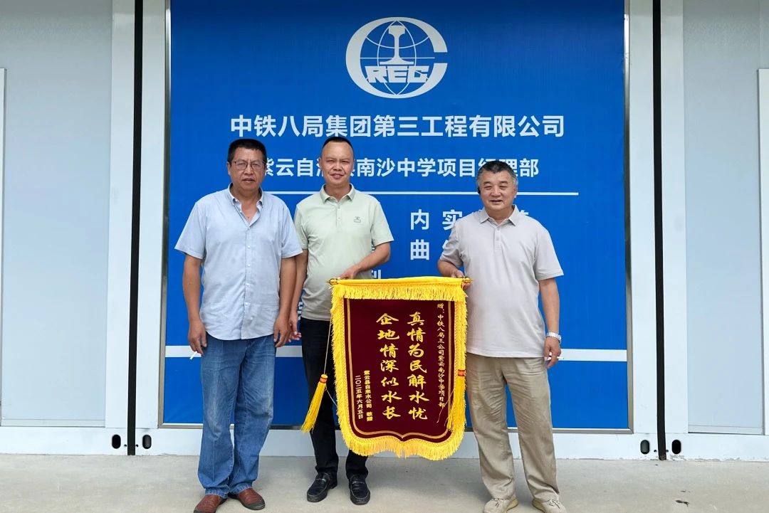 近日,紫云县自来水公司专程来到紫云南沙中学项目部,赠送了一面印有“真情为民解水忧 企地情深似水长”的锦旗,对项目部在关键时刻伸出援手,高效解决甘桥村村民停水难题表示诚挚感谢。