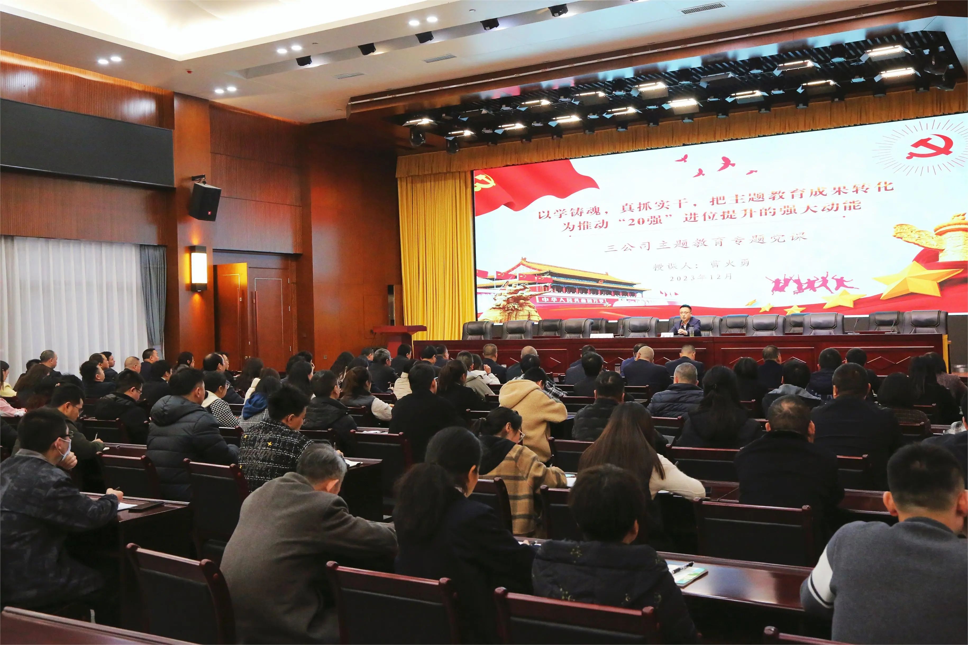 12月6日,公司党委副书记、总经理曹火勇以《以学铸魂,真抓实干,把主题教育成果转化为推动“20强”进位提升的强大动能》为题,为公司全体党员讲授了一堂学习贯彻习近平新时代中国特色社会主义思想主题教育专题党课。