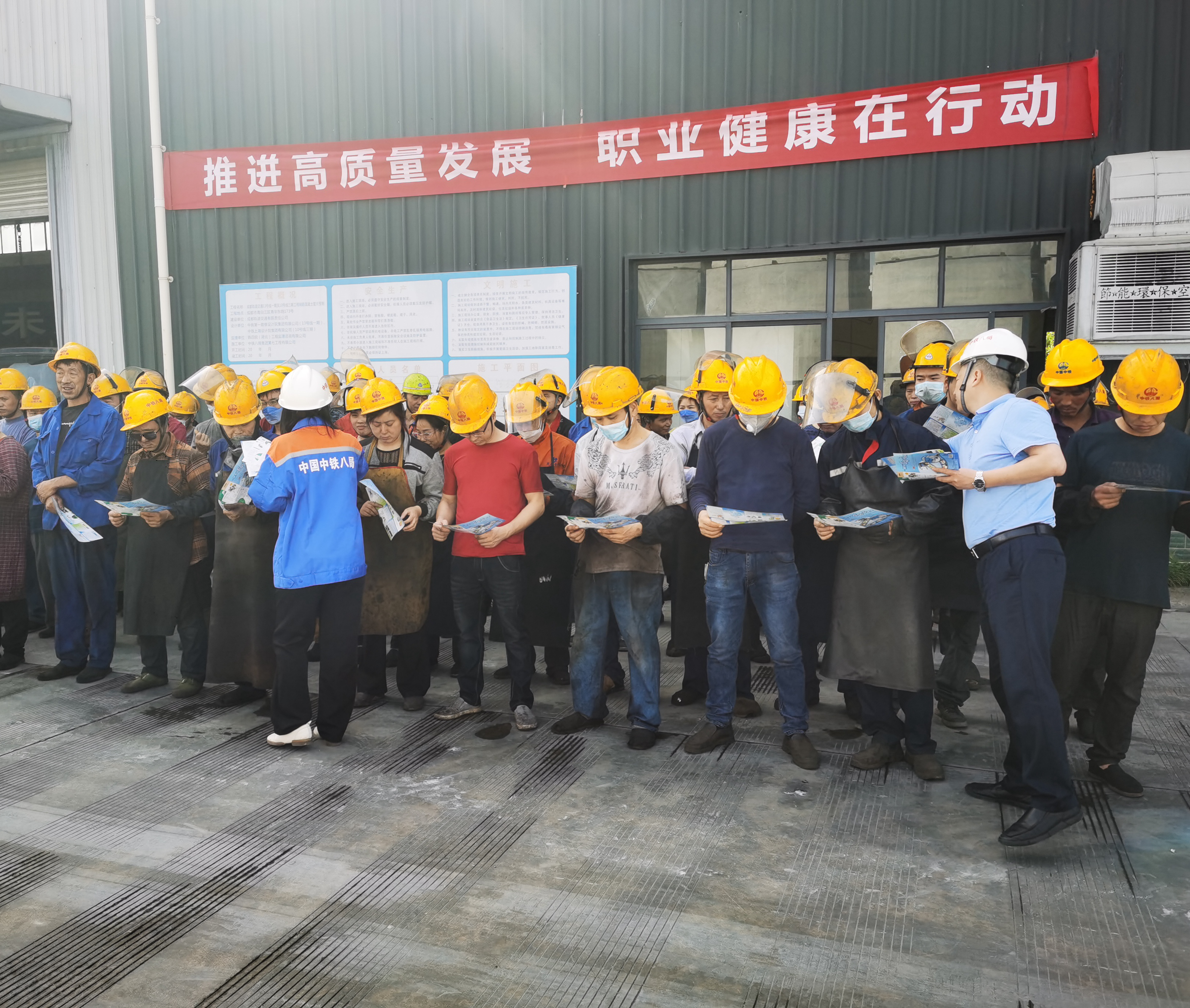 项目部领导班子成员与项目部专职安全管理员组队,分组前往驻地现场分发宣传单,对《职业病防治法》进行了宣讲,向项目部生产一线员工详细介绍了如何预防尘肺病、噪声的危害与防护及如何正确使用劳务防护用品等。