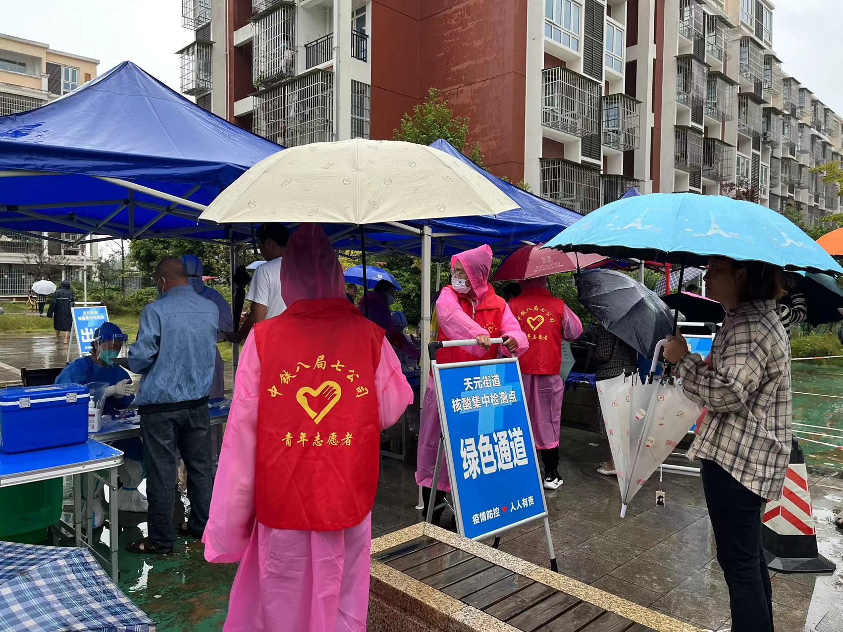 活动中,志愿者们不惧风雨,分工协作、各司其职,协助维持秩序、提供咨询、帮扶困难群体,及时为行动不便的老人、需要上课的学生开通绿色通道,耐心引导群众正确理解、积极配合、有序地进行核酸检测,以一丝不苟的工作态度助力核酸检测工作顺利进行,整个核酸检测过程井然有序。