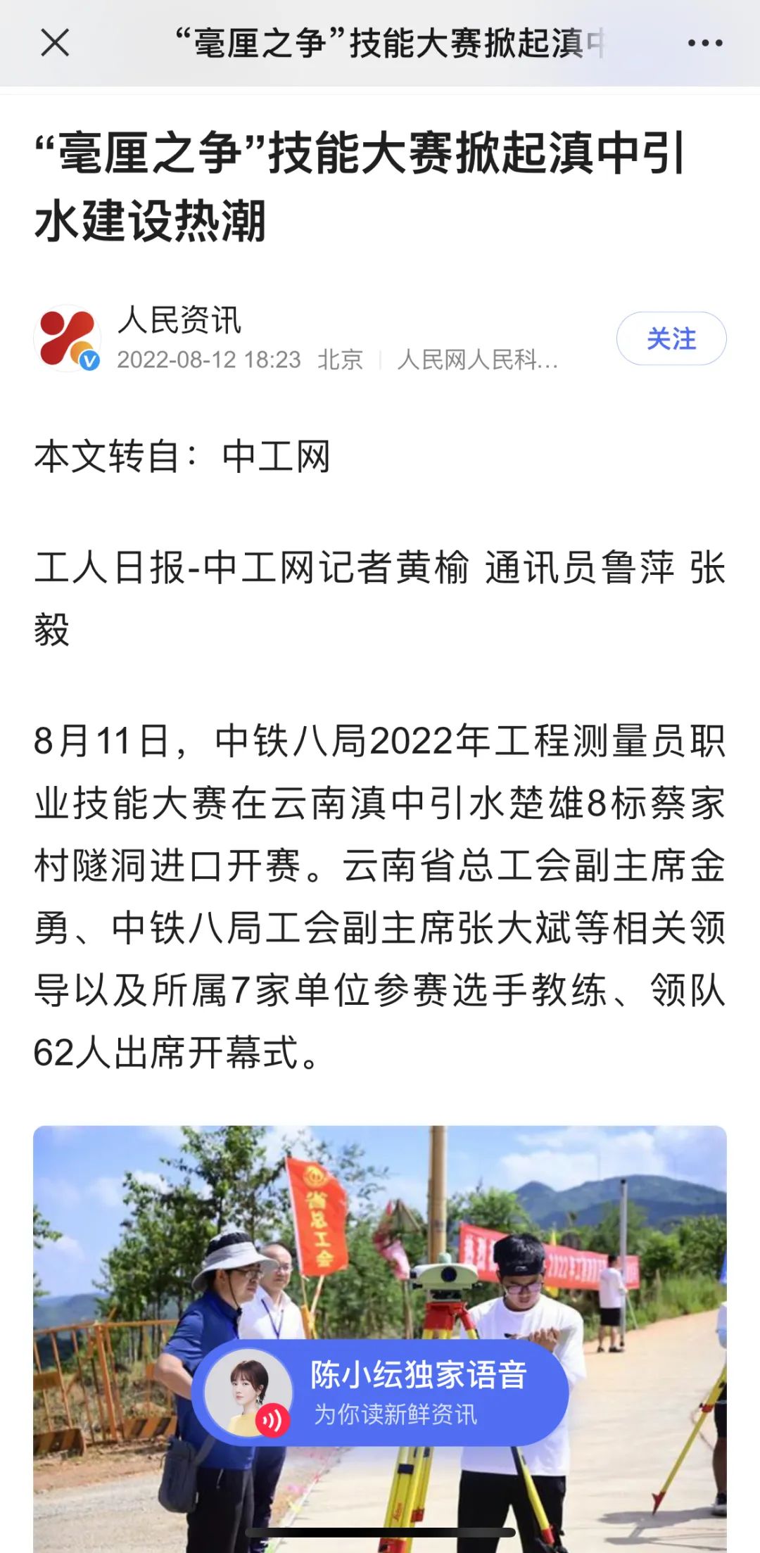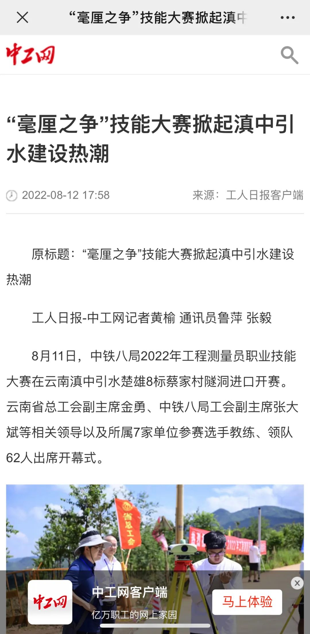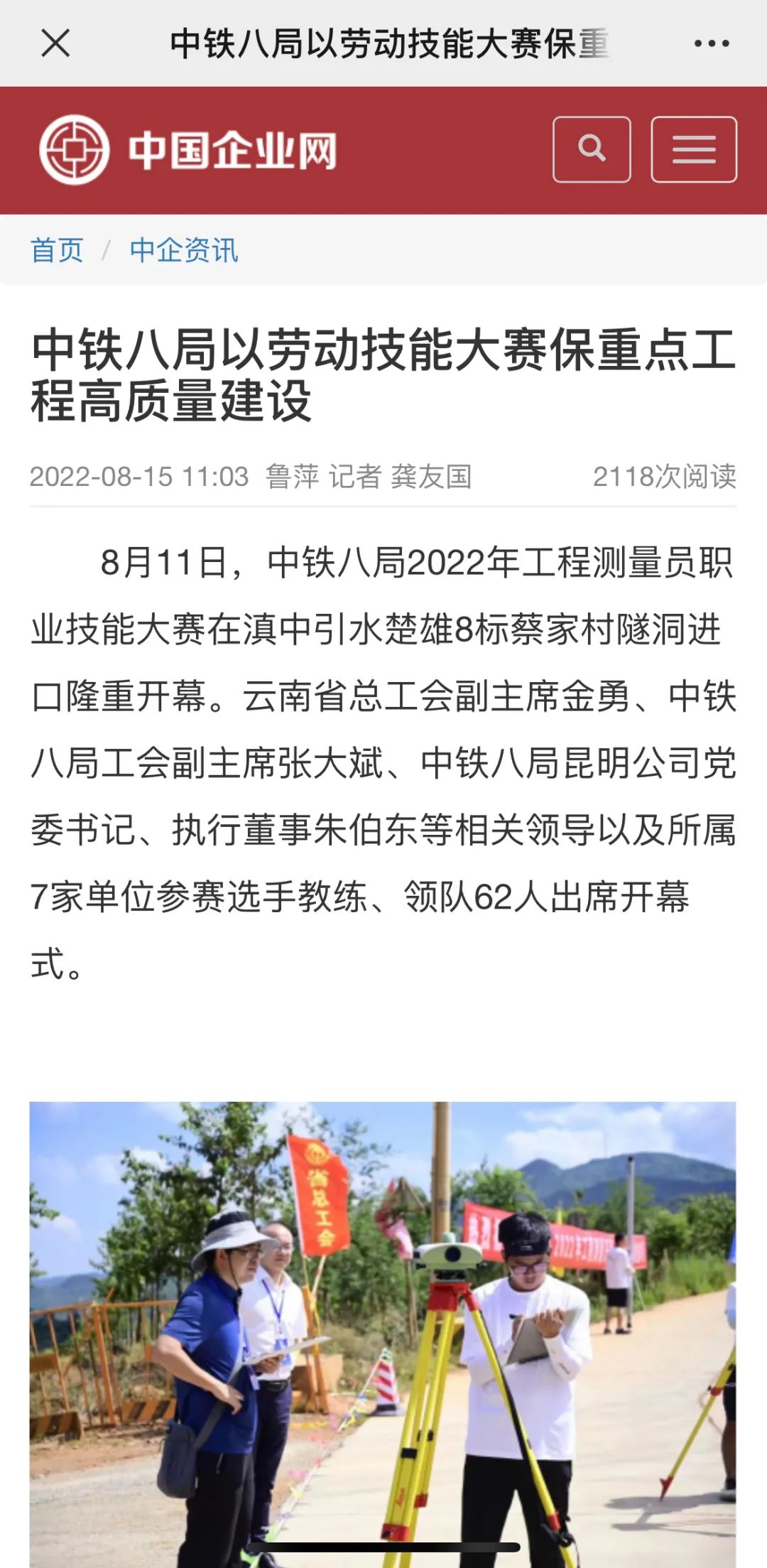 8月11日—14日,中铁八局在滇中引水楚雄8标项目举办2022年工程测量员职业技能大赛。