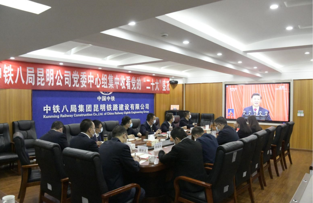 下好“先手棋”,抓牢“执牛耳”。昆明公司组织全体员工通过多种方式收听、收看了党的二十大直播盛况,确保掀起学习贯彻党的二十大精神热潮。同时,昆明公司党委及时组织召开学习党的二十大精神专题党委会和党委中心组理论学习,领导班子带头先学,实现“关键少数”引领。同时制定下发了《中铁八局昆明公司学习宣传贯彻党的二十大精神的实施方案》,对学习宣贯党的二十大精神工作做出全面部署。昆明公司主要领导带头讲授专题党课,其他班子成员深入项目党建联系点授课,全面系统准确地将党的二十大精神与企业实际相结合,确保全司员工对党的二十大精神认识到位、领会到位、落实到位。