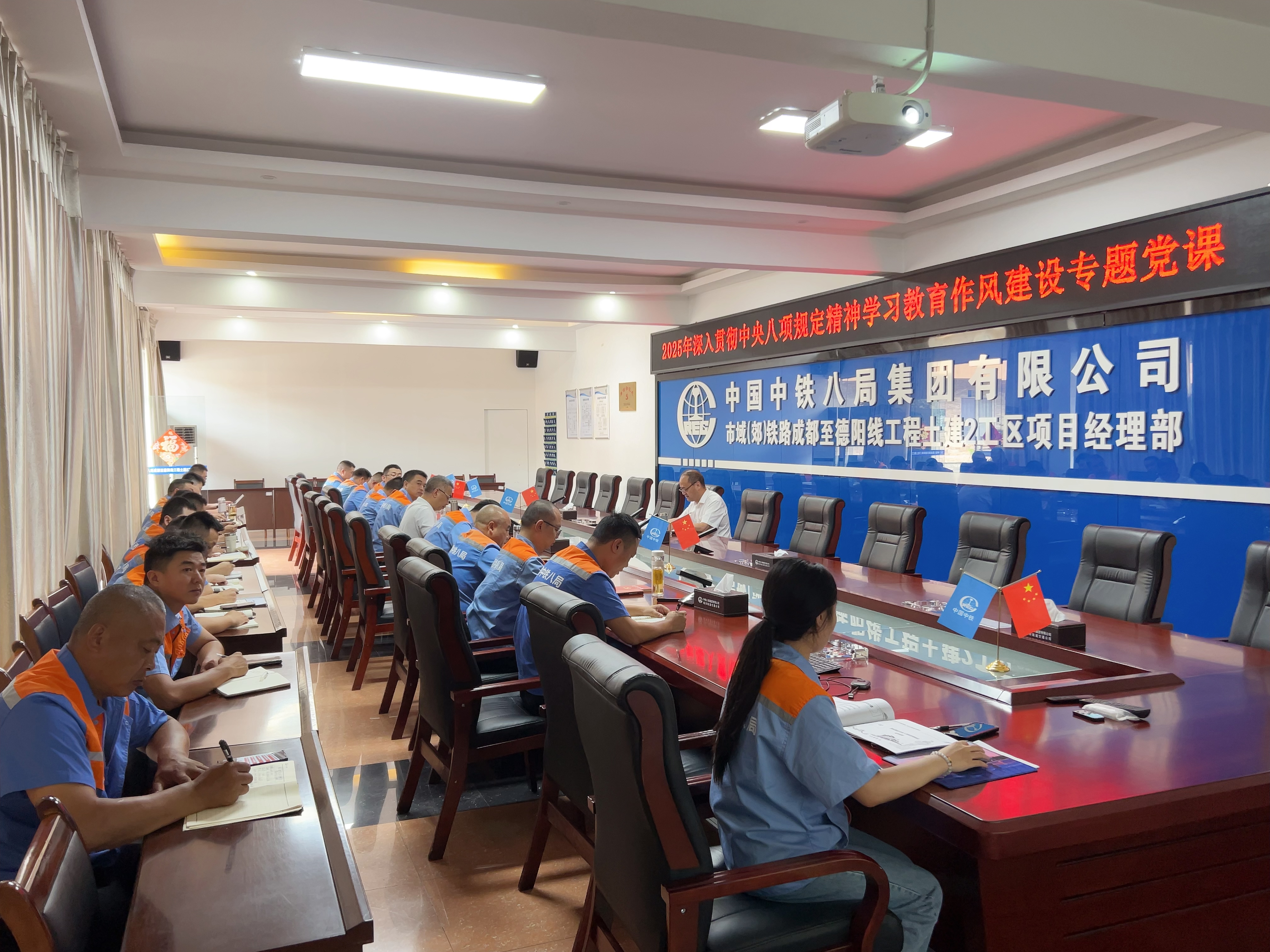 6月22日下午,集团公司副总经理、总工程师文庭亚到基层联系点成德市域铁路项目部讲授深入贯彻中央八项规定精神学习教育专题党课,公司副总经理周波,项目部相关人员参加学习。