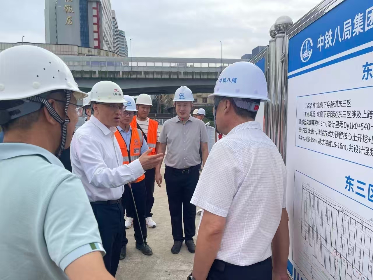 9月26日,成都交通投资集团有限公司党委副书记、副董事长、总经理聂斌,成都交投交通建设管理集团有限公司董事长张成毅,副总经理肖志强到成都北站片区项目部检查指导,公司党委书记、董事胡建,副总经理王勇及项目部相关人员参加。