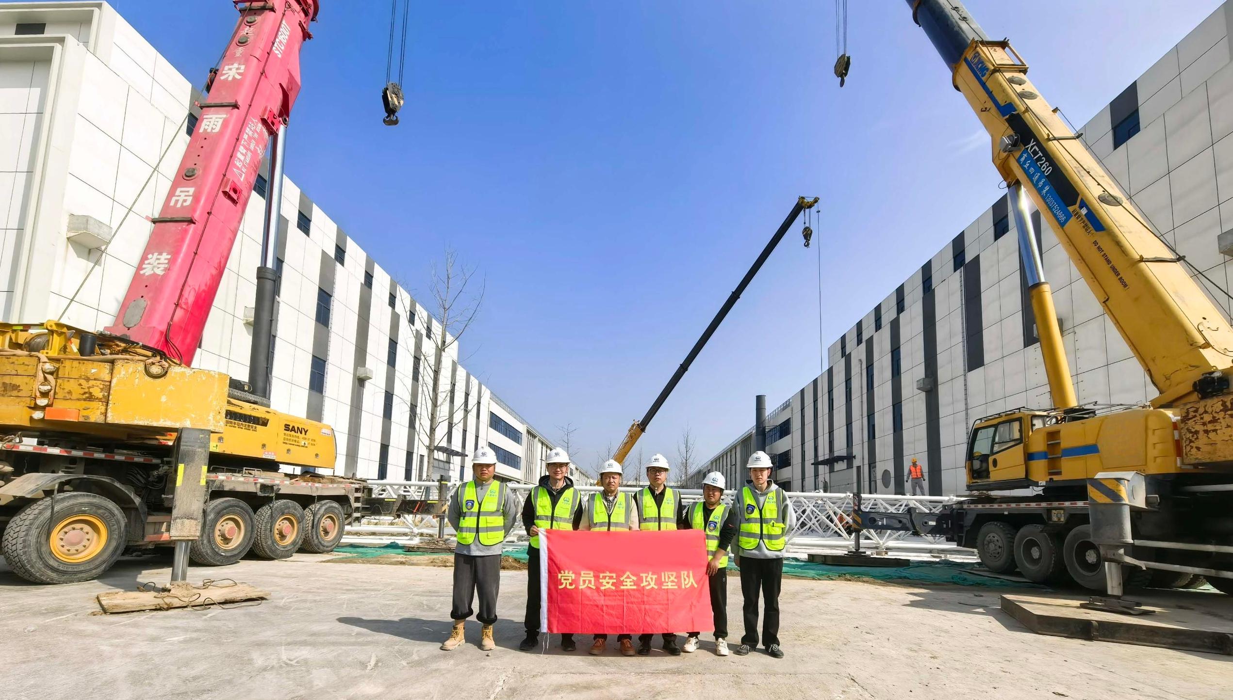 此次钢网架吊装的圆满完成,是项目党建与安全生产深度融合的生动实践,更是党员先锋模范作用的有力彰显。下一步,项目部将持续以党建引领生产建设,充分发挥党员安全攻坚队示范引领作用,以“时时放心不下”的责任感抓实抓细安全质量管控,科学统筹施工资源,全力推进项目高标准建设、高效率交付,奋力打造精品工程,让党旗在施工一线高高飘扬。